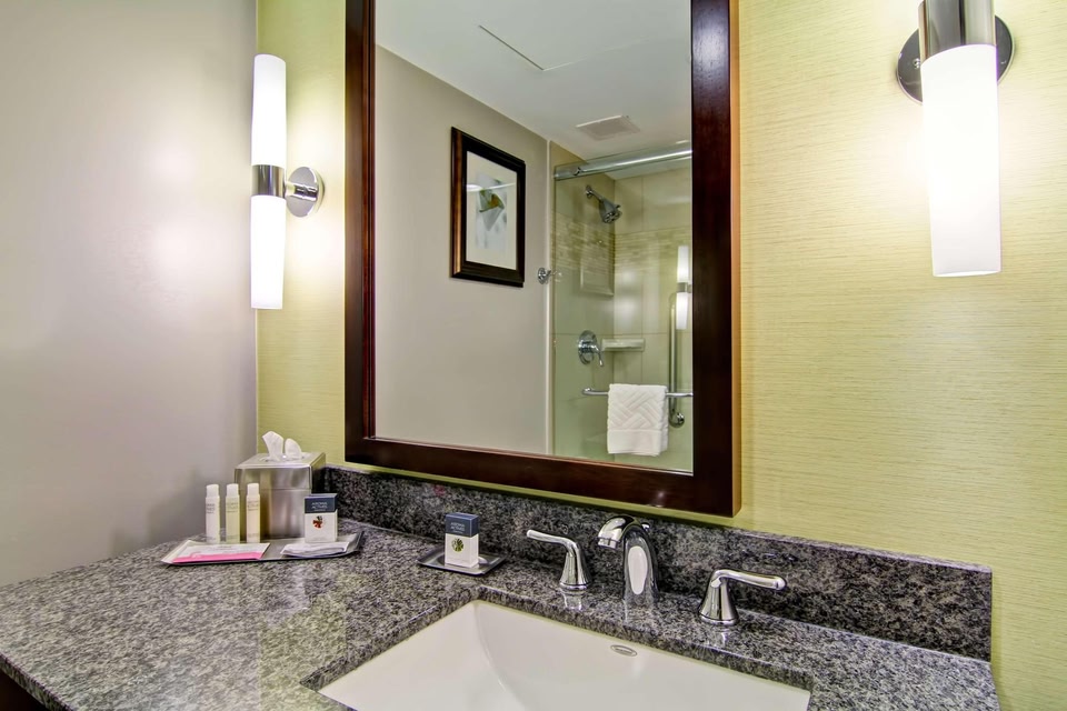 Located in Kamloops City Centre, a neighborhood in Kamloops, Doubletree by Hilton Hotel Kamloops is near a train station. Harper Mountain and Sun Peaks Resort are worth checking out if an activity is on the agenda, while those wishing to experience the area's natural beauty can explore Riverside Park and McArthur Island Park. Looking to enjoy an event or a game? See what's going on at Sandman Centre or Tournament Capital Centre. Practice your golf swing on a nearby course, or enjoy other activities in the great outdoors, such as hiking/biking trails in the area. Hotel with a seasonal outdoor pool, a quick walk to Royal Inland HospitalA restaurant, a 24-hour fitness center, and a bar/lounge are available at this smoke-free hotel. WiFi in public areas is free. Additionally, a snack bar/deli, a 24-hour business center, and a hot tub are onsite. Doubletree by Hilton Hotel Kamloops offers 100 air-conditioned accommodations with MP3 docking stations and laptop-compatible safes. 55-inch LCD televisions come with cable channels and pay movies. Guests can make use of the in-room refrigerators and coffee/tea makers. Bathrooms include shower/tub combinations, complimentary toiletries, and hair dryers. This Kamloops hotel provides complimentary wired and wireless Internet access. Business-friendly amenities include desks, safes, and phones. Housekeeping is provided daily. A seasonal outdoor pool and a hot tub are on site. Other recreational amenities include a 24-hour fitness center. The recreational activities listed below are available either on site or nearby; fees may apply.