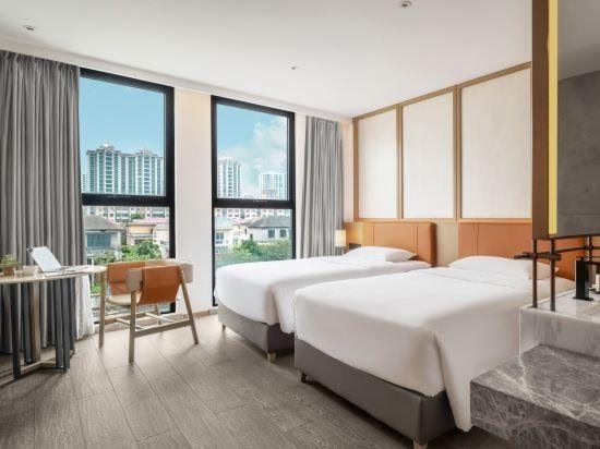 The hotel is located in the center of Beihai Yintan Tourism Resort. Beihai International Passenger Port is close to you and has convenient transportation. It is about 3 minutes' drive from Yintan Tourism Center and about 3 minutes' drive from Beihai Passenger Port Terminal and Qiaogang Food Street. The hotel rooms are creative by well-known domestic designers. They are designed with ingenious simple design. The large panoramic floor-to-ceiling windows can fully enjoy the beautiful views of the Beihai. The rooms are equipped with central air conditioning, minibars, etc., creating the most comfortable sleeping experience in Beihai for business elites and leisure travel experts. The hotel's top floor is equipped with an aerial terrace bar, creating a private space for business and socializing or gatherings of friends. Here, you can enjoy personalized and caring service, enjoy delicious food and wine, and spend your leisure time. All rooms are designed with a unique design and flexible layout. They are