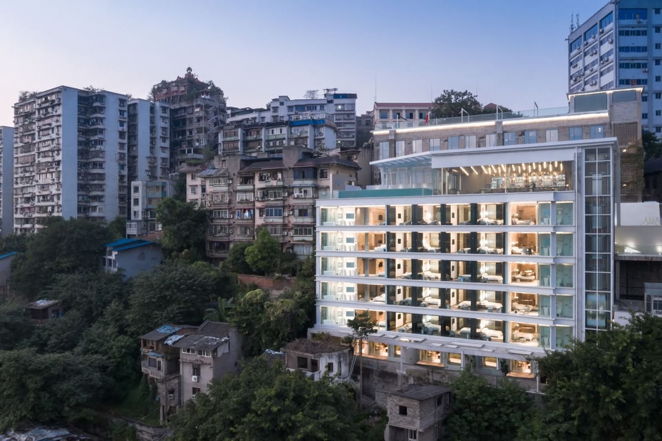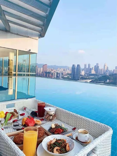 The hotel is strategically located in the Film and Television Industry Park in the back street of Jiefangbei Mountain City. It is built on the hillside and has a vast river view. The futuristic design of science and technology, pure white ins wind exterior wall, minimalist geometric lines and white light tubes, are shining. In the glorious night and river scene, it is like a spaceship parked on the top of Yuzhong, and we are passing through his deck towards the interstellar crossing. The first choice for car lovers to travel, free parkingThe hotel is seamlessly connected to Metro Line 1 (Exit 2 of Qixinggang Station, a straight line distance of about 200 meters and within 10 minutes of walking); adjacent to Jiefangbei business district, about 5 minutes by car from Hongyadong and the Yangtze River Cableway . It is about 20 kilometers away from Jiangbei International Airport, 10 kilometers away from Jiangbei Guanyin Bridge business district, 10 kilometers away from Chongqing West Railway Station, 7 kilometers away from Chongqing North Railway Station, 5 kilometers away from Nanbin Road, and about 3 kilometers away from Chaotianmen Wharf. The magnificent Yangtze River is within easy reach. The hotel has various guest rooms, all of which overlook the night view of the mountain city and the beautiful view of the Yangtze River. The restaurant focuses on high-end western food, with elegant and generous design, full of romantic atmosphere. The art exhibition hall meets the needs of various gatherings, exhibitions, product launches, and training. The afternoon tea room in the outdoor courtyard is an oasis of tranquility to escape from the metropolis, and the infinity pool is a guarantee to bring you vitality every day. The first choice for car lovers to travel, free parking Santi means to enjoy the present, just in the right time in the living space, enjoy the beauty of the moment, infinity pool, avant-garde design garden, just take a blockbuster.