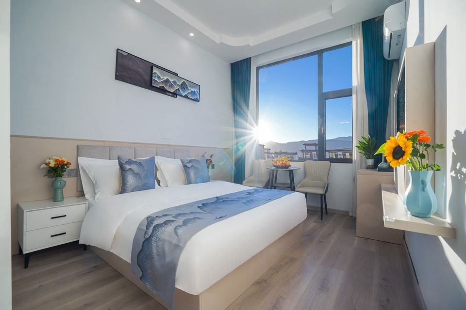 This homestay is located in Wufeng Beipai Village, Qihe Town, Gucheng District, backed by the towering Wulao Mountain and only 5 minutes away from Lijiang Sanyi International Airport. The architectural style is typical of Bai ethnic residences, and the homestay has a courtyard garden and a resting area, which is quiet and comfortable. There are breakfast, restaurants, and supermarkets downstairs, as well as pharmacies, barbecues, and various snacks nearby. Free airport transfer services are also available.