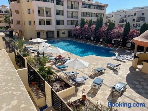 Το Pool side 2 Bedroom Queens gardens Complex βρίσκεται στην Πάφο και παρέχει δωρεάν WiFi και θέα στην πισίνα. Έχει επίσης εξωτερική πισίνα, κήπο και βεράντα. Αυτό το κατάλυμα προσφέρει ιδιωτική πισίνα και δωρεάν ιδιωτικό χώρο στάθμευσης.