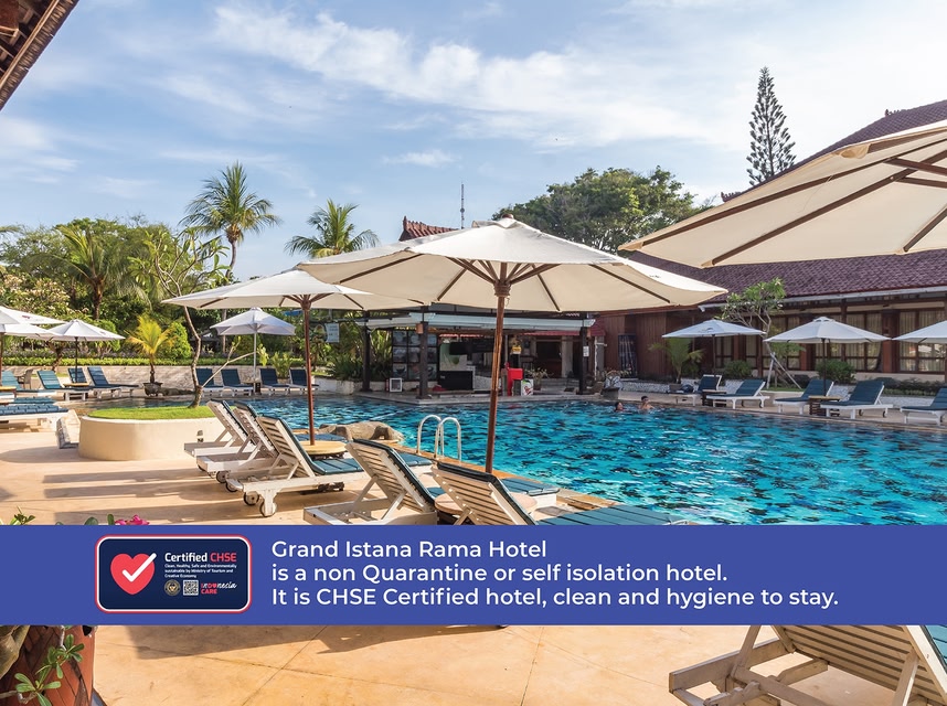 Το Grand Istana Rama Hotel βρίσκεται σε κοντινή απόσταση με τα πόδια από την παραλία Kuta και την πλατεία Kuta, καθώς και από την έντονη νυχτερινή ζωή του Jalan Legian. Διαθέτει μπαρ τοποθετημένο μέσα στην εξωτερική πισίνα.