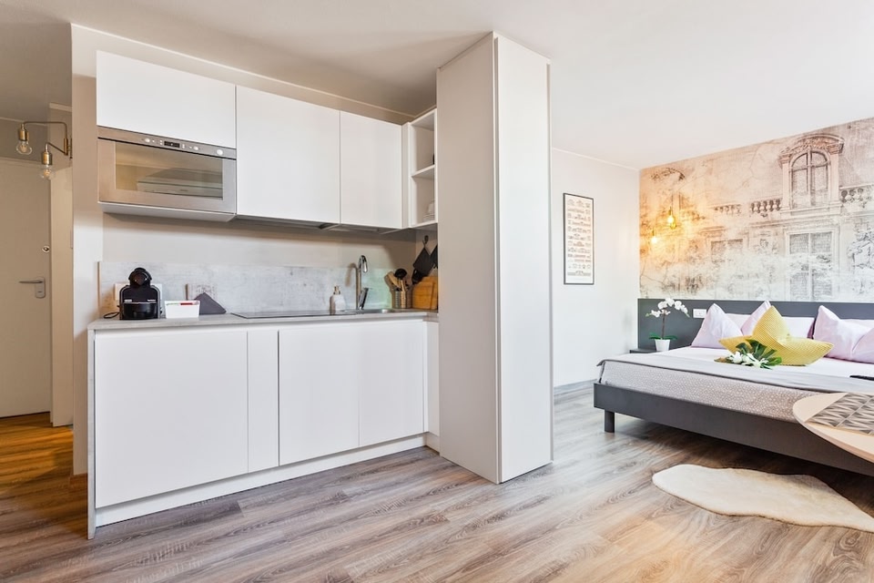 Luxurious Romantic Studio in VicenzaCity Views and Free WiFiEnjoy stunning city views from this air-conditioned studio apartment in Vicenza. Stay connected with free WiFi throughout your stay.Modern AmenitiesRelax in style with a flat-screen TV, a fully equipped kitchen, and a comfortable seating area. The apartment also includes towels and bed linen for your convenience.Convenient LocationLocated near dining options and just a short distance from the airport, Piazzetta Palladio Romantic Studio is the perfect choice for your stay in Vicenza.Book now to experience luxury and comfort at Piazzetta Palladio Romantic Studio!