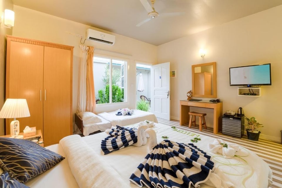 Luxurious Accommodation on a Private BeachStarry Night at Ukulhas, located on the picturesque sand cay island of Alif Alif Atoll, offers modern air-conditioned rooms with free Wi-Fi, a private beach area, and a restaurant. Guests can enjoy various activities like snorkeling and Manta Ray safaris.Convenient Location and Comfortable RoomsSituated just a short walk from the sandy shores of Ukulhas Island, the inn is only an 80-minute ride from Malé International Airport. The rooms feature amenities such as a flat-screen TV, minibar, and safety deposit box, ensuring a comfortable stay.Diverse Dining Options and Excellent ServicesIndulge in a variety of international cuisines at the Central Dinner Restaurant, including Indian, Thai, Continental, and local Maldivian dishes. The hotel also offers a fitness centre, 24-hour front desk assistance, and services like luggage storage and room service.Book your stay at Starry Night at Ukulhas for a memorable beachfront experience!