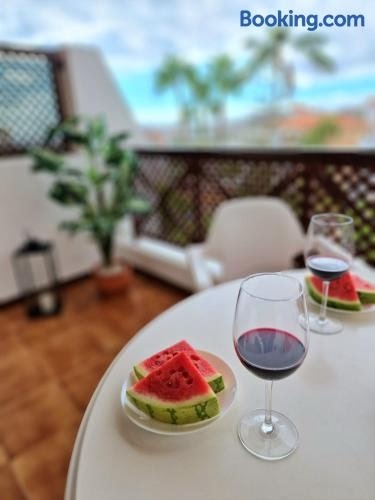 Strelitzia Apartment - ocean view & heated pool, que tiene piscina al aire libre, jardín y restaurante, dispone de alojamiento en San Miguel de Abona con wifi gratis y vistas a la montaña. Este alojamiento ofrece ping pong.