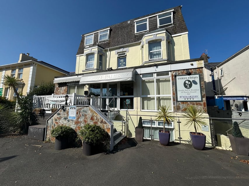 Το Three Palms Hotel είναι σε Paignton και προσφέρει καταλύματα με δωρεάν WiFi και τηλεόραση επίπεδης οθόνης, καθώς και βεράντα και μπαρ. Υπάρχει ένα ιδιωτικό μπάνιο με ντους σε κάθε μονάδα, καθώς και δωρεάν προϊόντα μπάνιου και στεγνωτήρας μαλλιών.